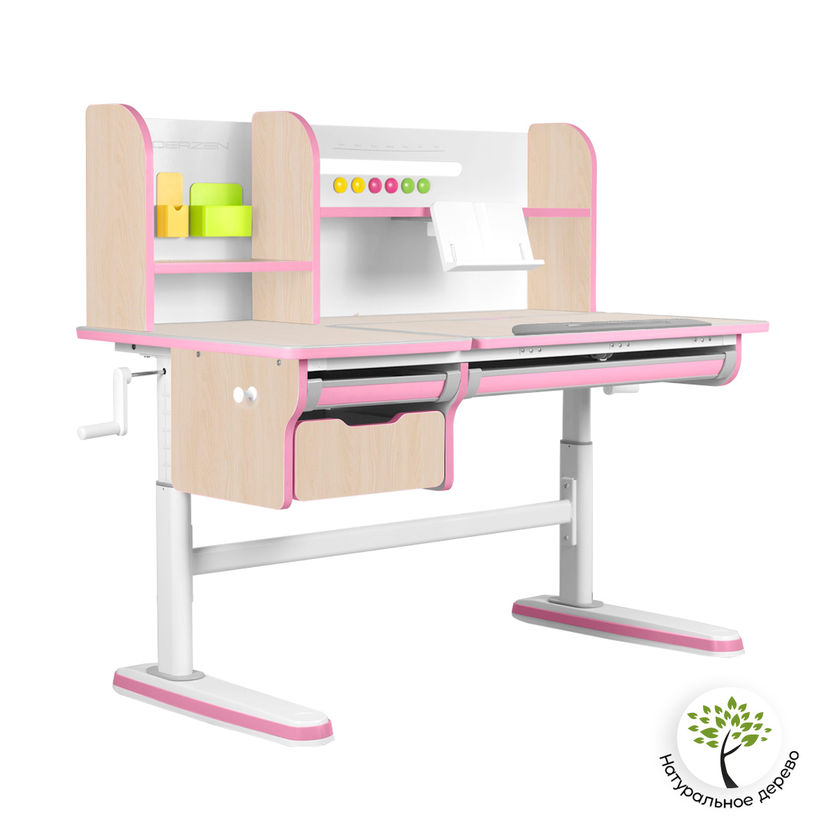 Растущая парта Kinderzen Dali Plus создана для комфортной учебы ребенка. Она подходит детям от 5 лет и может сопровождать ученика на весь период обучения от детского садика и до выпускного класса. Парта регулируется по высоте и таким образом растёт вместе с ребенком. Отрегулировать её на правильную высоту поможет ростовая шкала-подсказка на ножках. Менять высоту очень просто – справится даже ребенок. Достаточно воспользоваться ручкой сбоку – начните крутить её по часовой или против часовой стрелки, и парта начнет менять свою высоту.